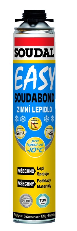 Pěna vyniká velmi dobrými spojovacími schopnostmi a výraznou adhezní silou a pevností. Je vhodná především pro rychlou montáž rámů oken a dveří a vyplňování uzavřených dutin. Popis - Lepící pěna Soudal SOUDABOND EASY pistolová.